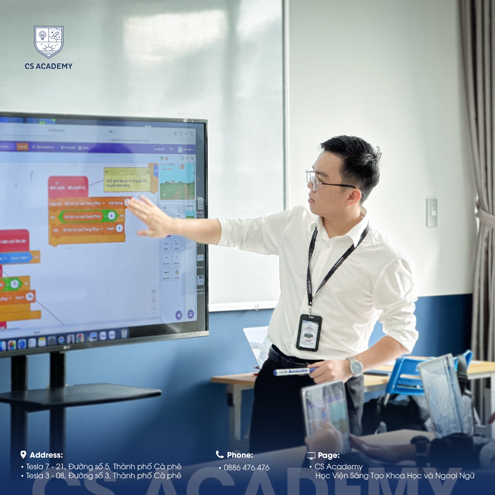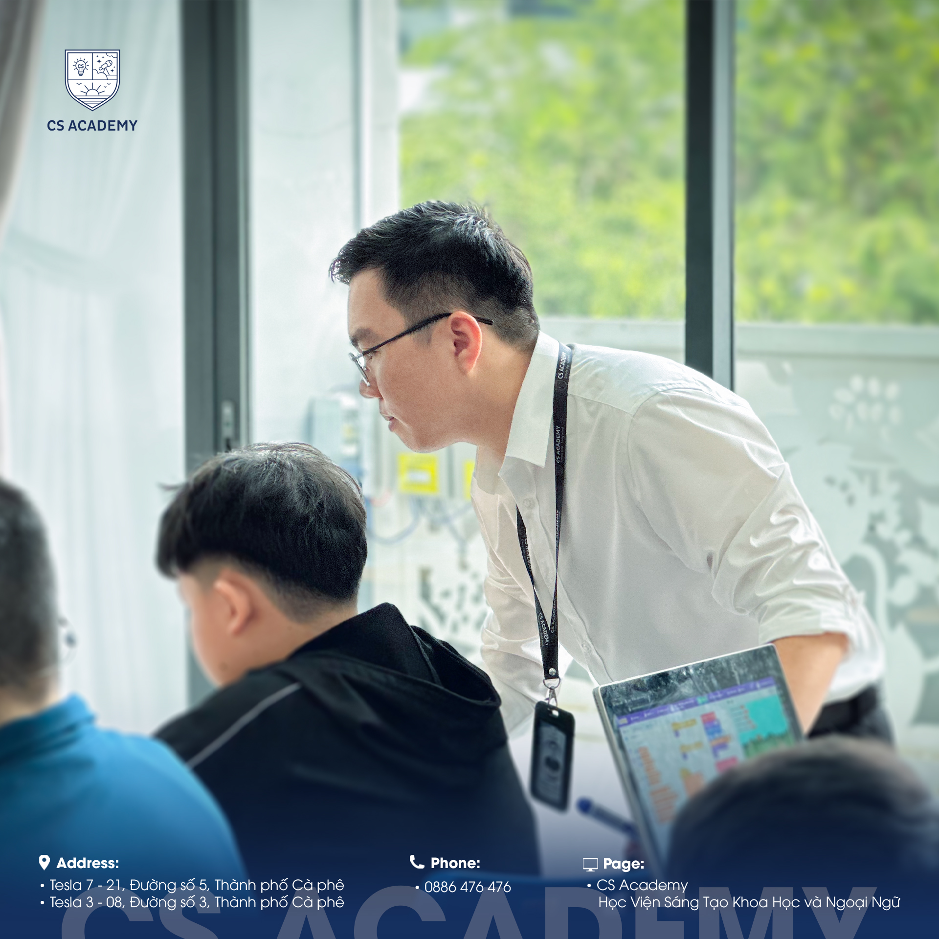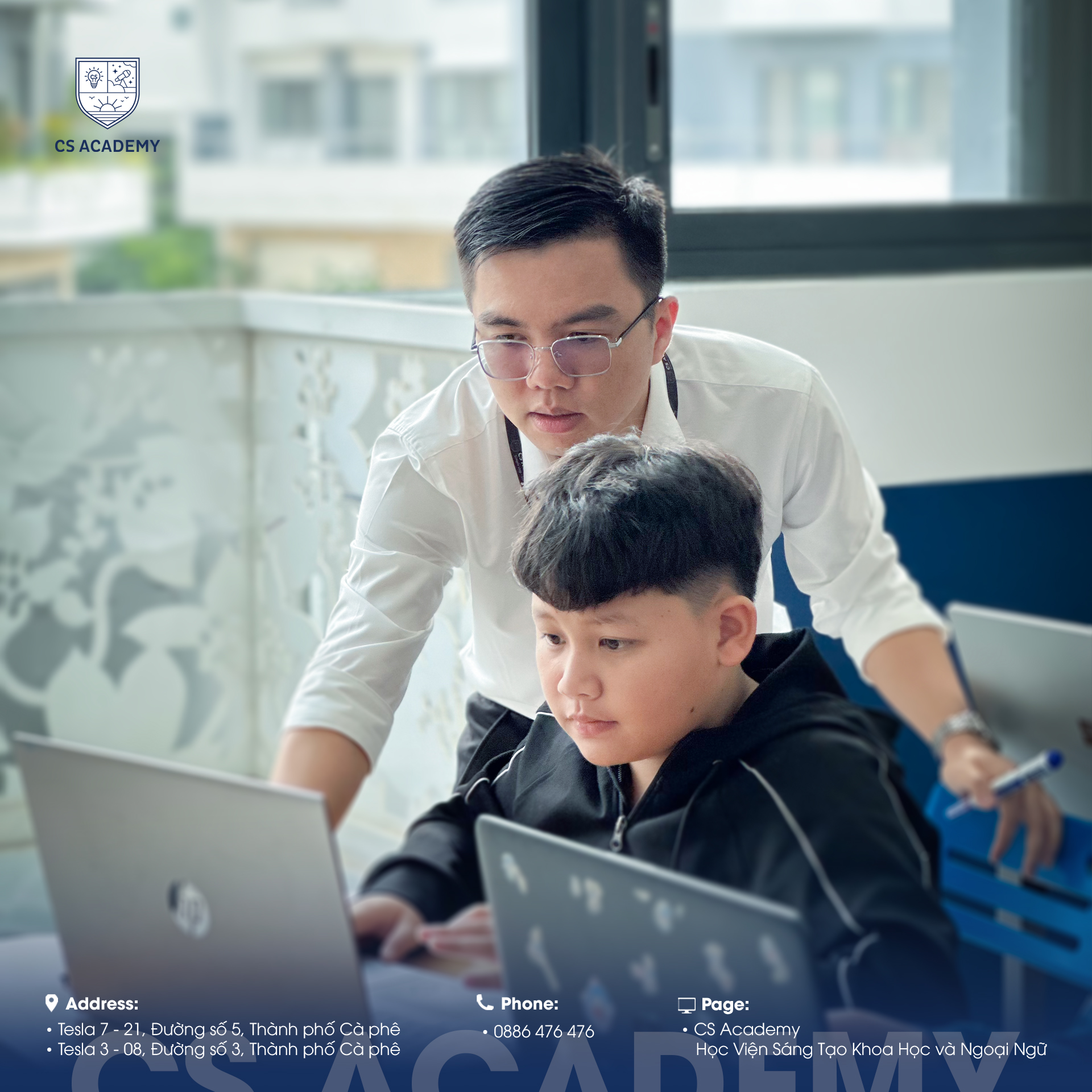 CS Academy là trung tâm đào tạo giáo dục toàn diện, tập trung vào các lĩnh vực Tiếng Anh – Toán & Khoa học – Robotics – Tin học ứng dụng – Nghệ thuật, đồng hành cùng học viên xây dựng nền tảng vững chắc và phát triển tư duy trong môi trường học tập tích cực, hiện đại.